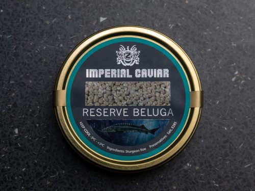 Reserve Beluga is a term given to a particularly rare Beluga Caviar with large steel-grey roe; this is the ultimate luxury in gourmet food.Ā Classed by the producer as ā000ā Standard, that it is the very best in three categories, which are large roe size, light Silver colour, and excellent texture with a very fine and creamy smooth taste. Our Reserve Beluga has consistently been lauded as the very best on the market and undoubtedly nothing else comes close. This is one of the most sought after Caviar from the Huso Huso pure breed Giant Sturgeon. With a delicate Caviar roe size of 3.3mm to 3.5mm in diameter.